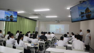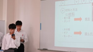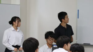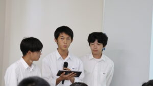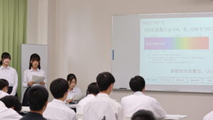 5・6時限の時間に理数科2年生対象の理数探究中間発表会が、進取館にて行われました。各班で行われている探究の現時点での成果や今後の展望などを発表してくれました。質疑応答にもしっかりと答えていました。