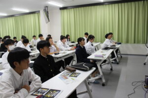 10月21日(火) 令和7年度 第2回科学講演会を独立行政法人エネルギー・金属鉱物資源機構(JOGMEC)鈴木徹氏、佐久間盾氏をお招きして実施しました。理数科の1年生にとっては社会の第一線で活躍する専門家のお話を聞ける貴重な機会です。やりたい事を見つける。その為の能力を身に付ける。やりたい事が実現できる大学に行く。体力は必要。生徒達にとっては将来を考える良い機会になりました。