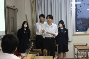 11月5日(水) ベトナム事前研修 静岡大学 比留間洋一先生の2回目の来校です。前半は比留間先生の講義、後半は生徒からプレゼンが行われました。「ベトナムの人の流行の髪型を知りたい」など比留間先生が面白いと言ってくださるプレゼンができました。
