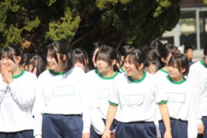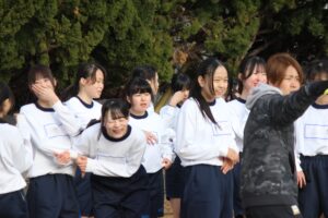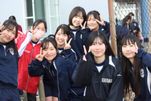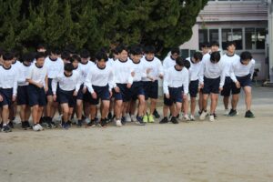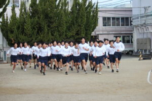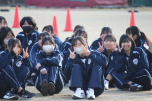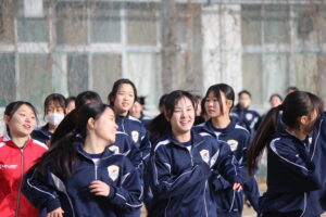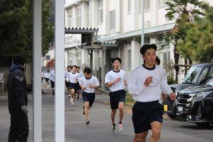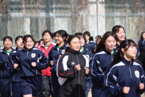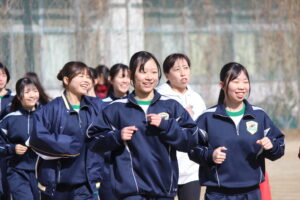 2月12日(木) 先週に雨天延期となった長距離走記録会を実施しました。走る順は1年女子、男子、2年女子、男子です。長距離が得意な生徒も苦手な生徒も日頃の練習の成果を発揮できました。走る前や後はいつもの榛高生らしい楽しげな表情が見られました。