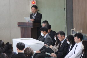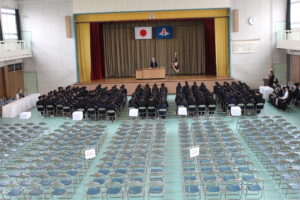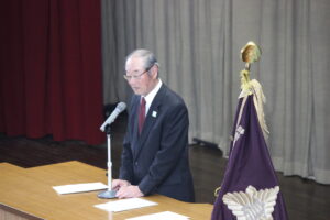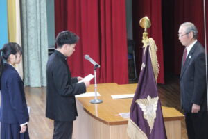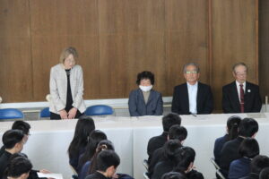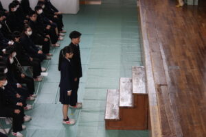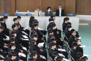 2月27日(金) 同窓会長の木下様他役員の皆様をお招きして同窓会入会式を行いました。木下莉子さんと坂岡來夢さんが理事に任命され、第77回期代表として挨拶をしました。