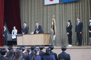 4月7日(火) 榛原高校の新任式・始業式が講堂で行われました。赴任された先生方の紹介のあと、始業式が行われました。岡野校長先生は理科の先生として相良高校に勤められた事もあり、牧之原市に親しみを持ってくださっています。始業式のあいさつでは探究に触れられ、「学ぶことの楽しさを思い出してください」とお話をしてくださいました。
