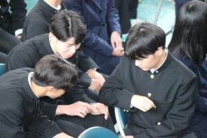 その後、担任・副担任や部活の顧問の発表がされました。明日からの新学期が楽しみですね。