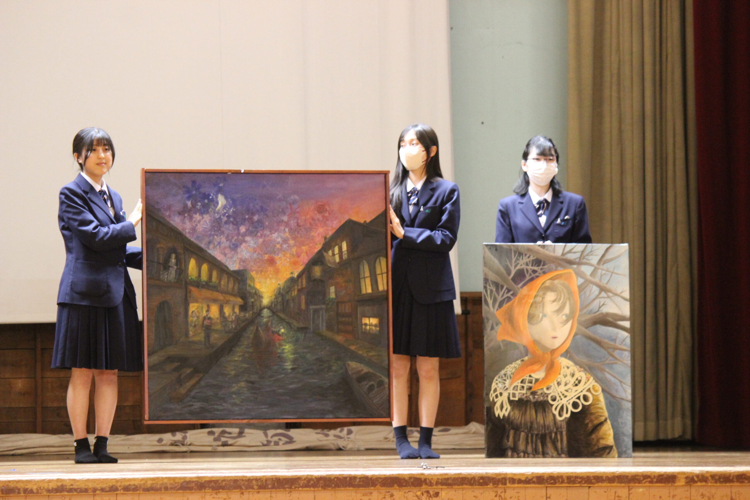 4月9日(木) 放課後に講堂で部活動紹介が行われました。発表順は科学、美術・書道、吹奏楽 茶道・家庭、演劇、グローカル、陸上競技、男女バレー、男子バスケ、男子テニス、野球、剣道、卓球、弓道、バドミントン、サッカーの順です …