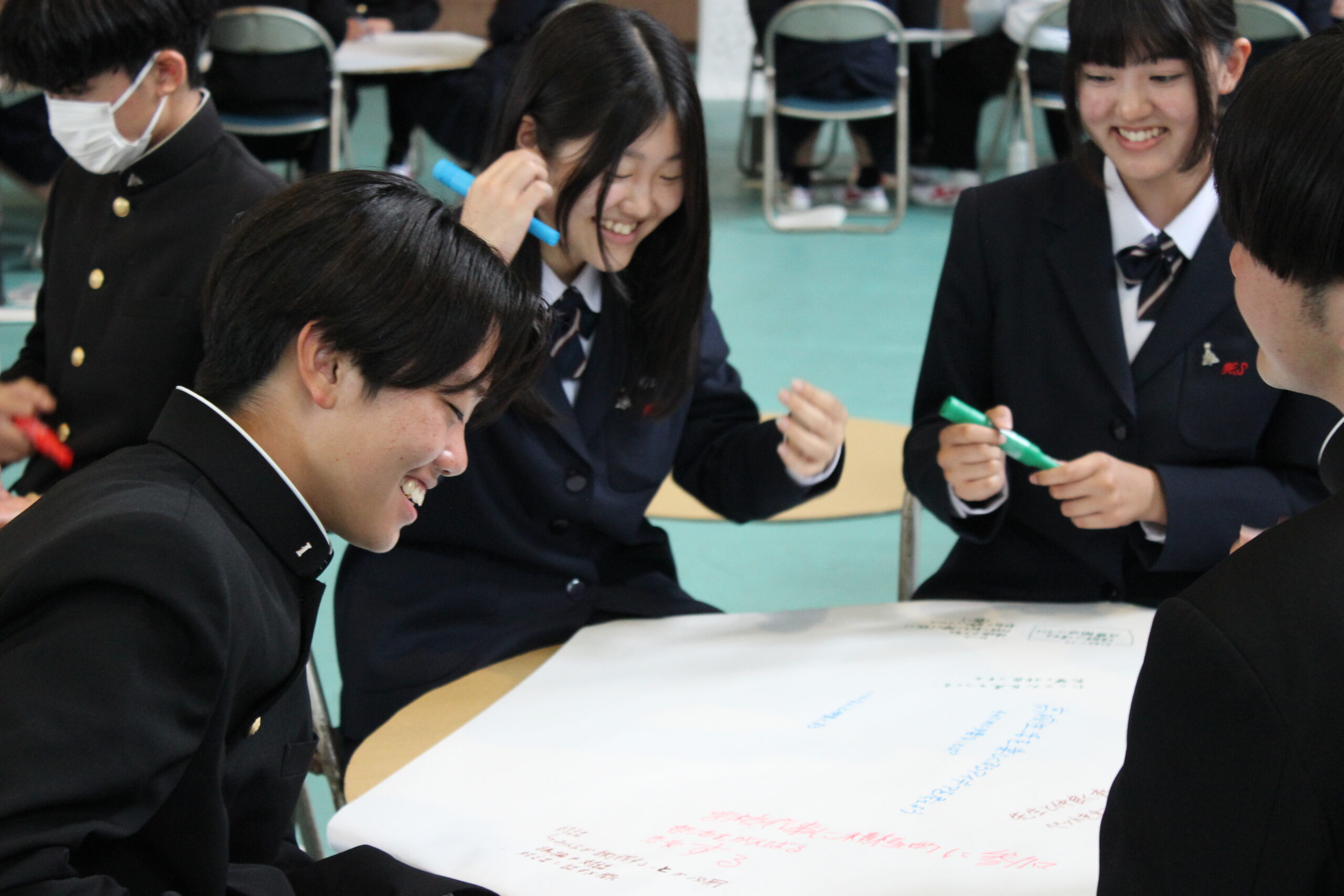 4月13日(月) 講堂で1年生を対象にファシリテーション・グラフィック研修が行われました。講師は一般社団法人 CLIPの池ケ谷さんと武田さんです。 共通点を持ったグループを作って何のグループなのか発表したり、椅子を円状 …
