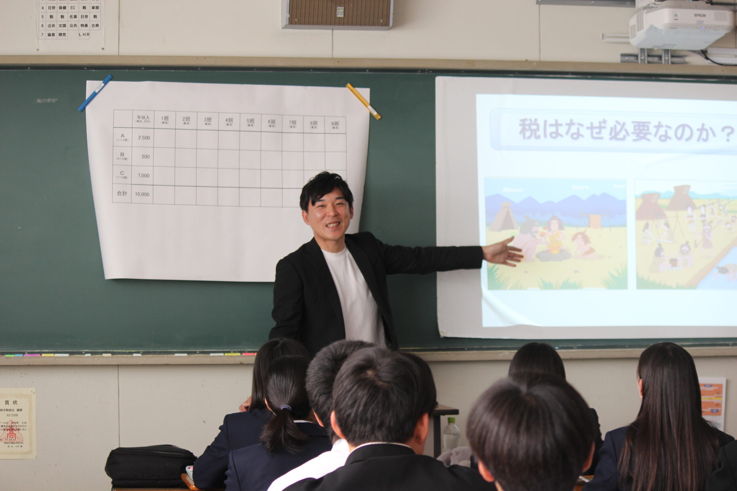 11月11日(火) 税理士の方をお招きして2年生の租税教室が開催されました。それぞれのクラスで税理士の方が税についてお話をされました。その後、4~5名のグループに分かれて意見を出し合いました。
