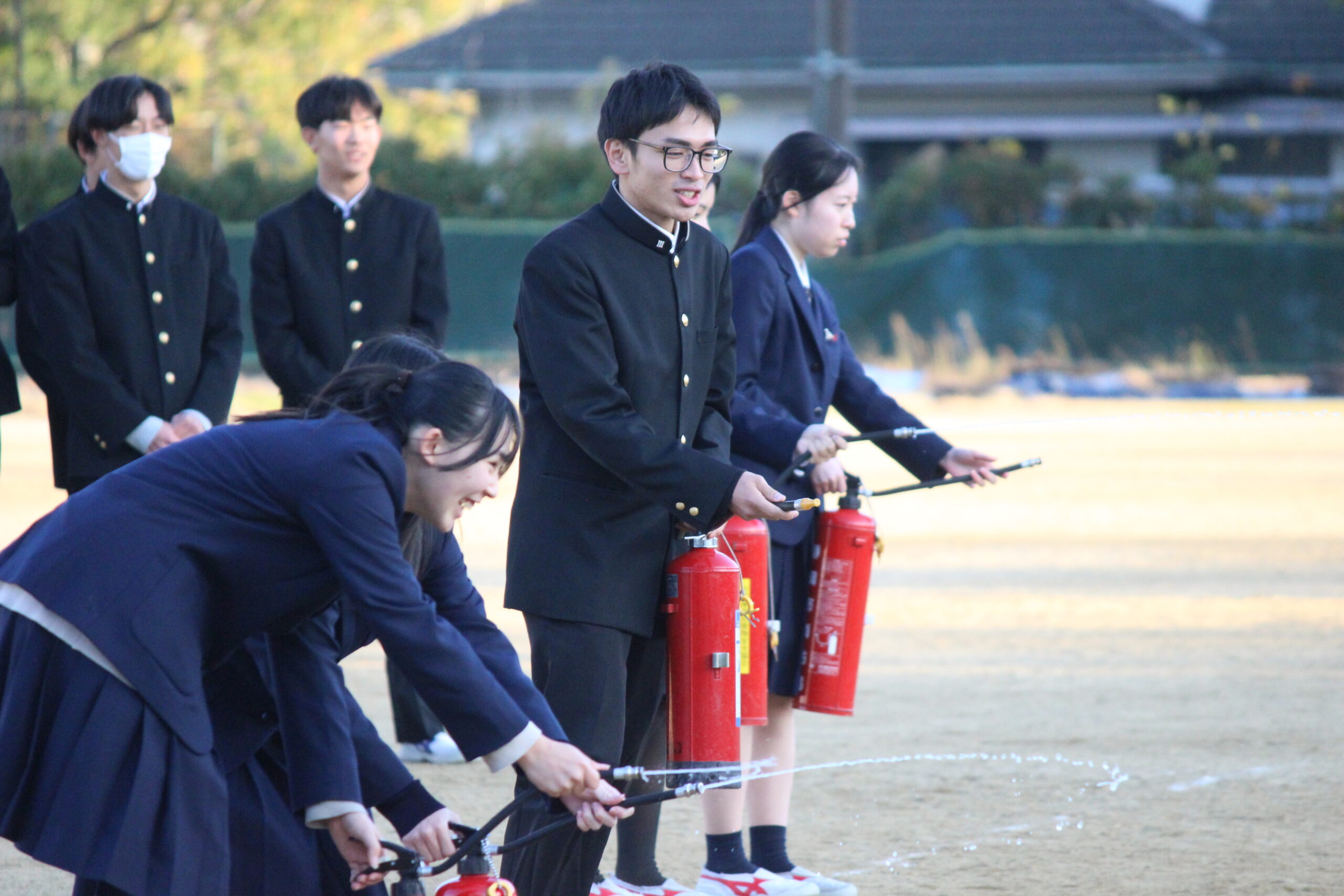 12月11日(木) 授業中に調理室から出火したことを想定した避難訓練を実施しました。救助袋を用いた避難の方法や消火器での初期消火を体験しました。大変寒い中でしたが、しっかりと訓練ができました。