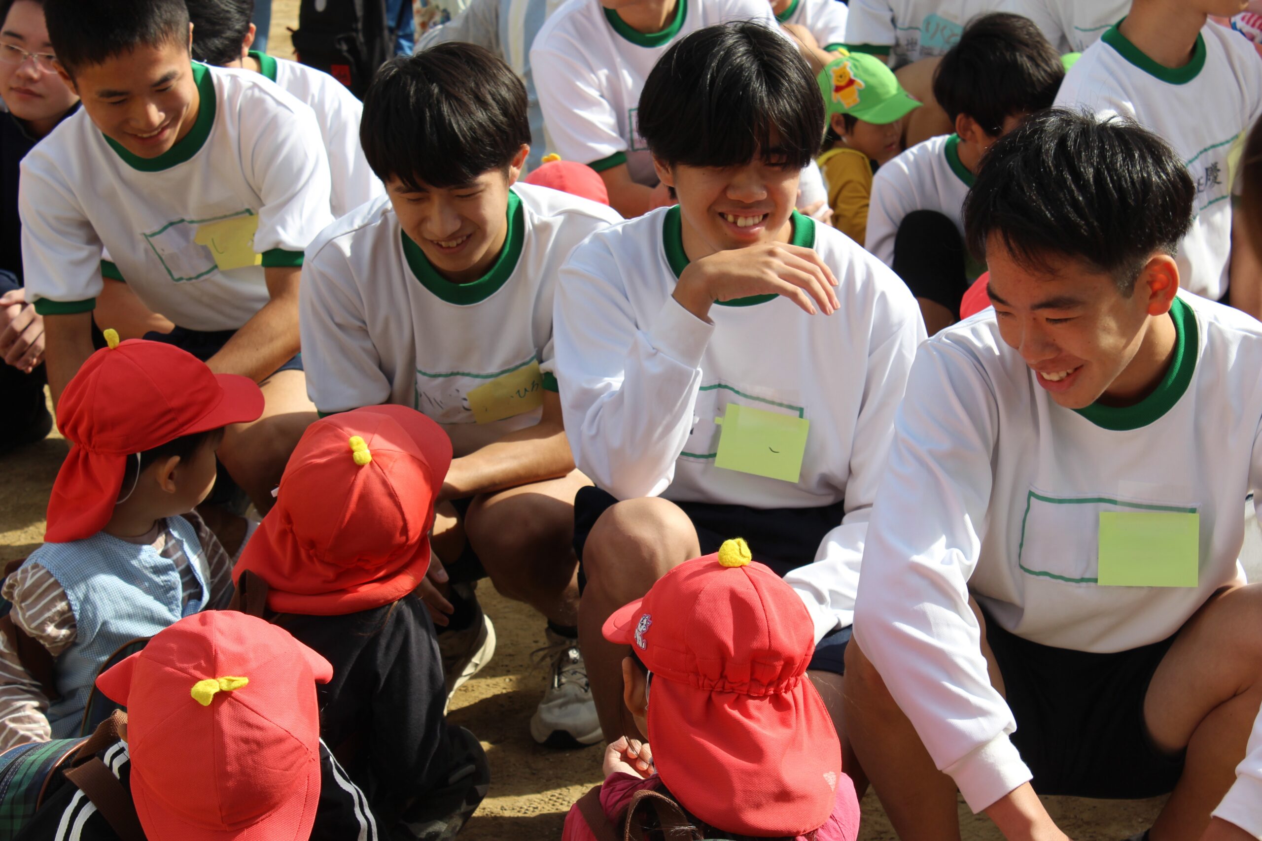 10月30日(木) 23・24HRを対象に保育体験実習を実施しました。前回と同じ静波保育園の幼児60人が来校し、グラウンドでどんぐりひろいやボール遊びをして子供達とふれあいました。