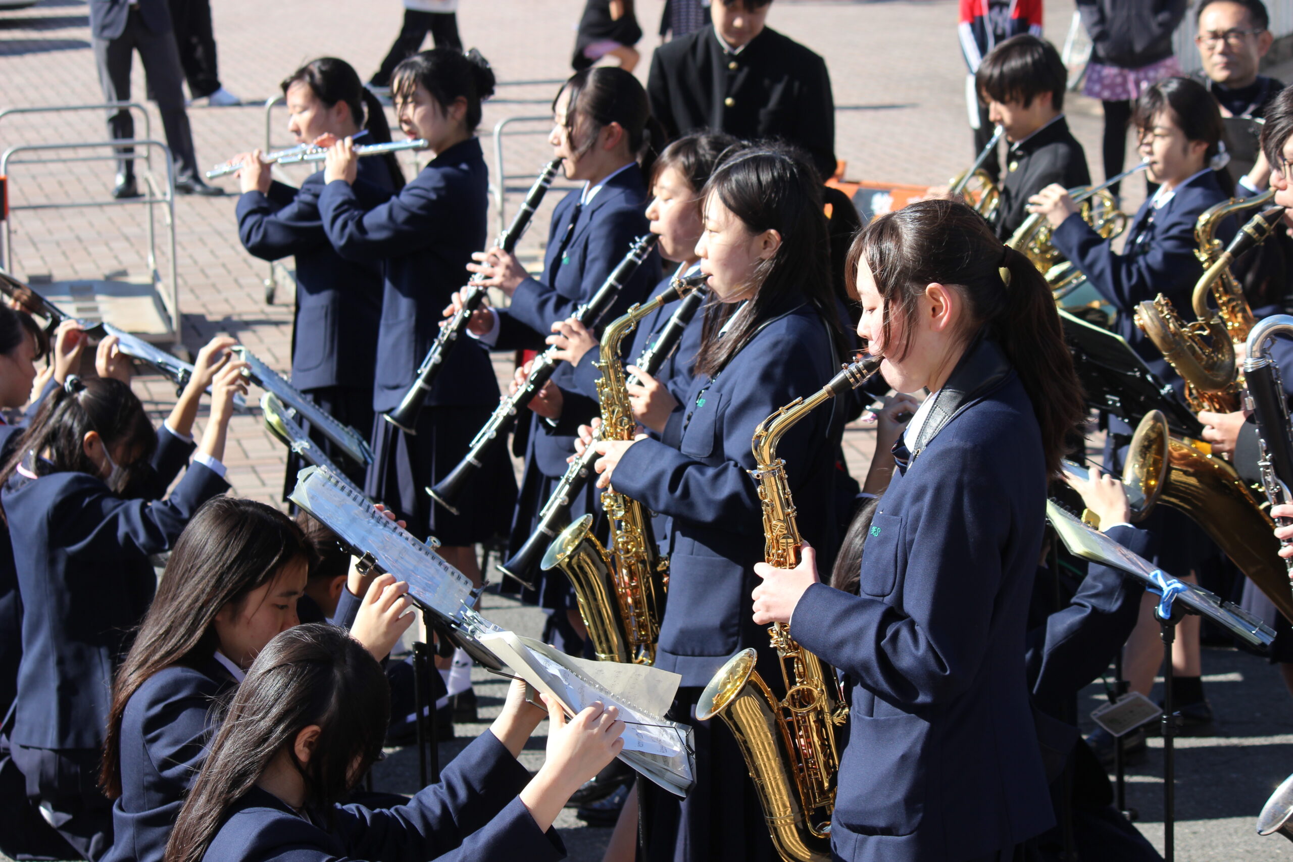 11月3日(月・祝日) 吹奏楽部が牧之原市文化の森図書館「いろ葉」一周年記念セレモニーで演奏しました。演奏は風の強い中行われましたが、グローカル部の楽譜を押さえる手伝いもあって素晴らしい演奏をすることができました。