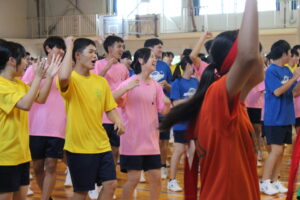 10月16日(木) 今日・明日、球技大会が開催されます。雨のため体育館で開会式が行われました。サッカー・バスケットボール・バレーボールに分かれてクラスの団結を競います。明日も熱い戦いが繰り広げられます。